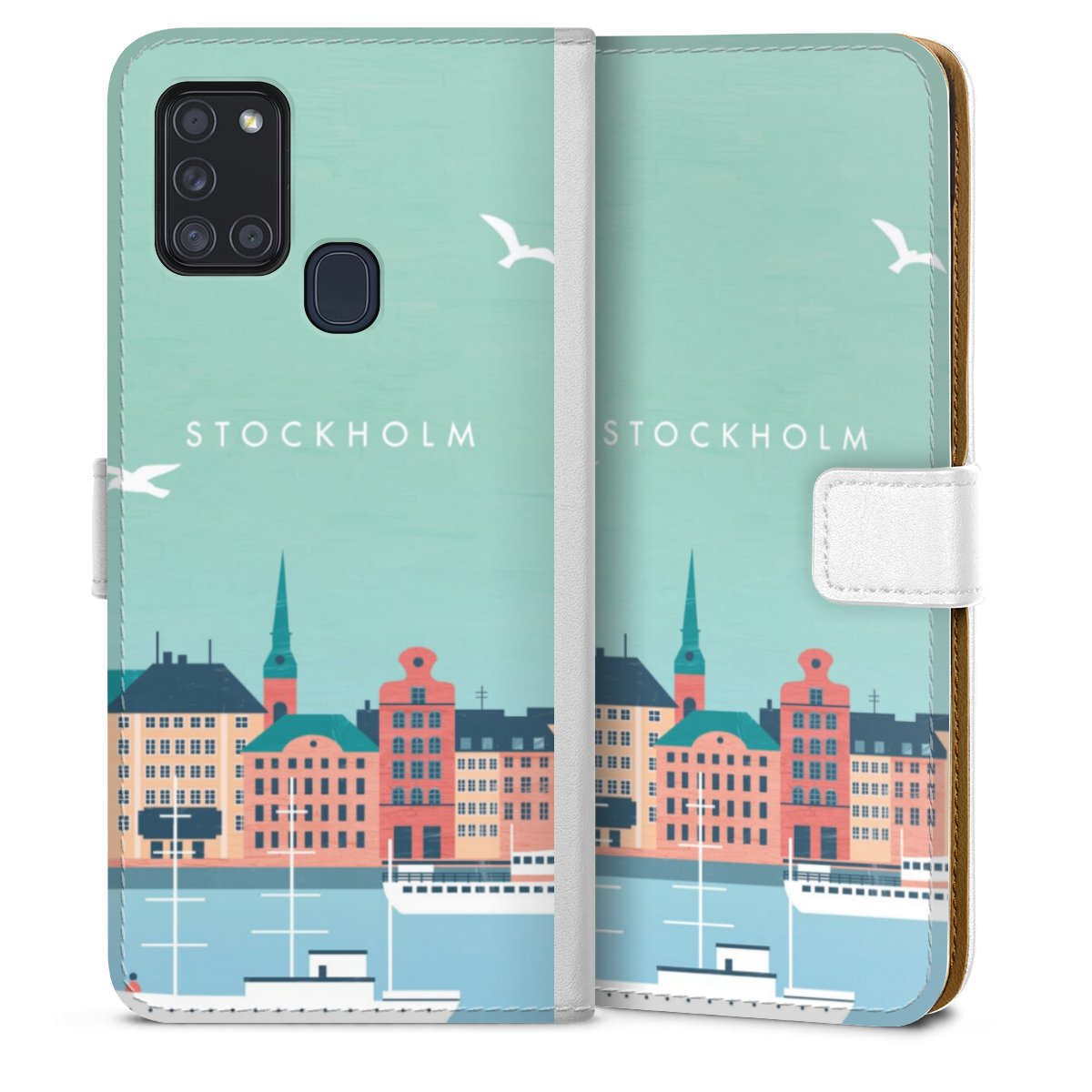 For our Sideflip Case we are using our advanced direct printing technology. The back and frontside are fully printabale, the inside of the phone bag is left unprinted. You can order the phone case without print, printed completely or also with a partial print.