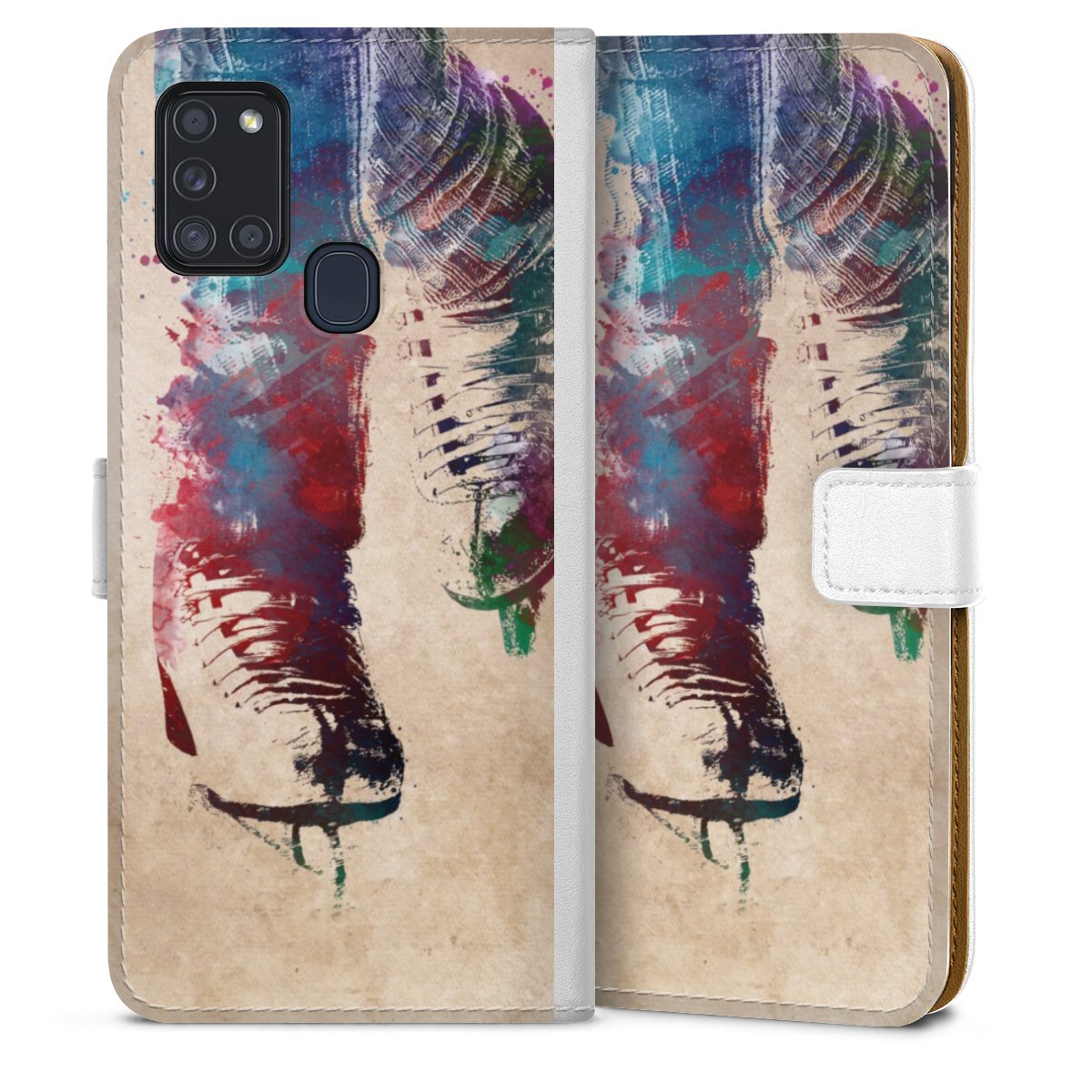 For our Sideflip Case we are using our advanced direct printing technology. The back and frontside are fully printabale, the inside of the phone bag is left unprinted. You can order the phone case without print, printed completely or also with a partial print.