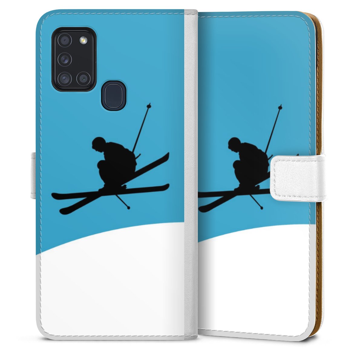 For our Sideflip Case we are using our advanced direct printing technology. The back and frontside are fully printabale, the inside of the phone bag is left unprinted. You can order the phone case without print, printed completely or also with a partial print.