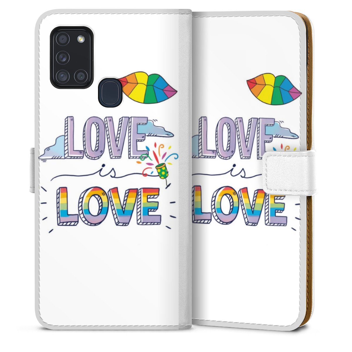 For our Sideflip Case we are using our advanced direct printing technology. The back and frontside are fully printabale, the inside of the phone bag is left unprinted. You can order the phone case without print, printed completely or also with a partial print.