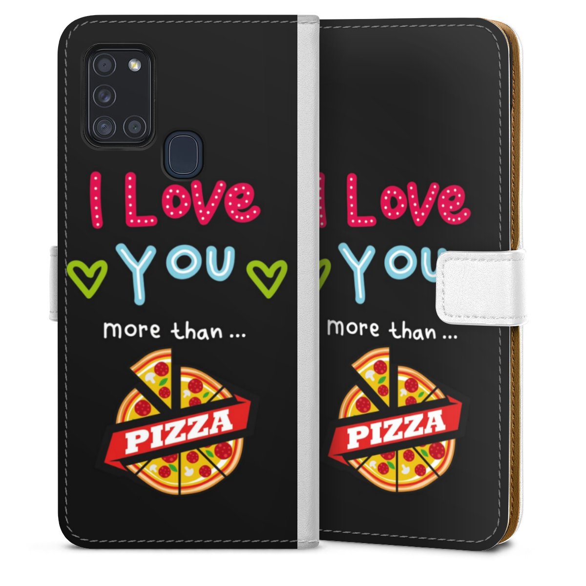 For our Sideflip Case we are using our advanced direct printing technology. The back and frontside are fully printabale, the inside of the phone bag is left unprinted. You can order the phone case without print, printed completely or also with a partial print.