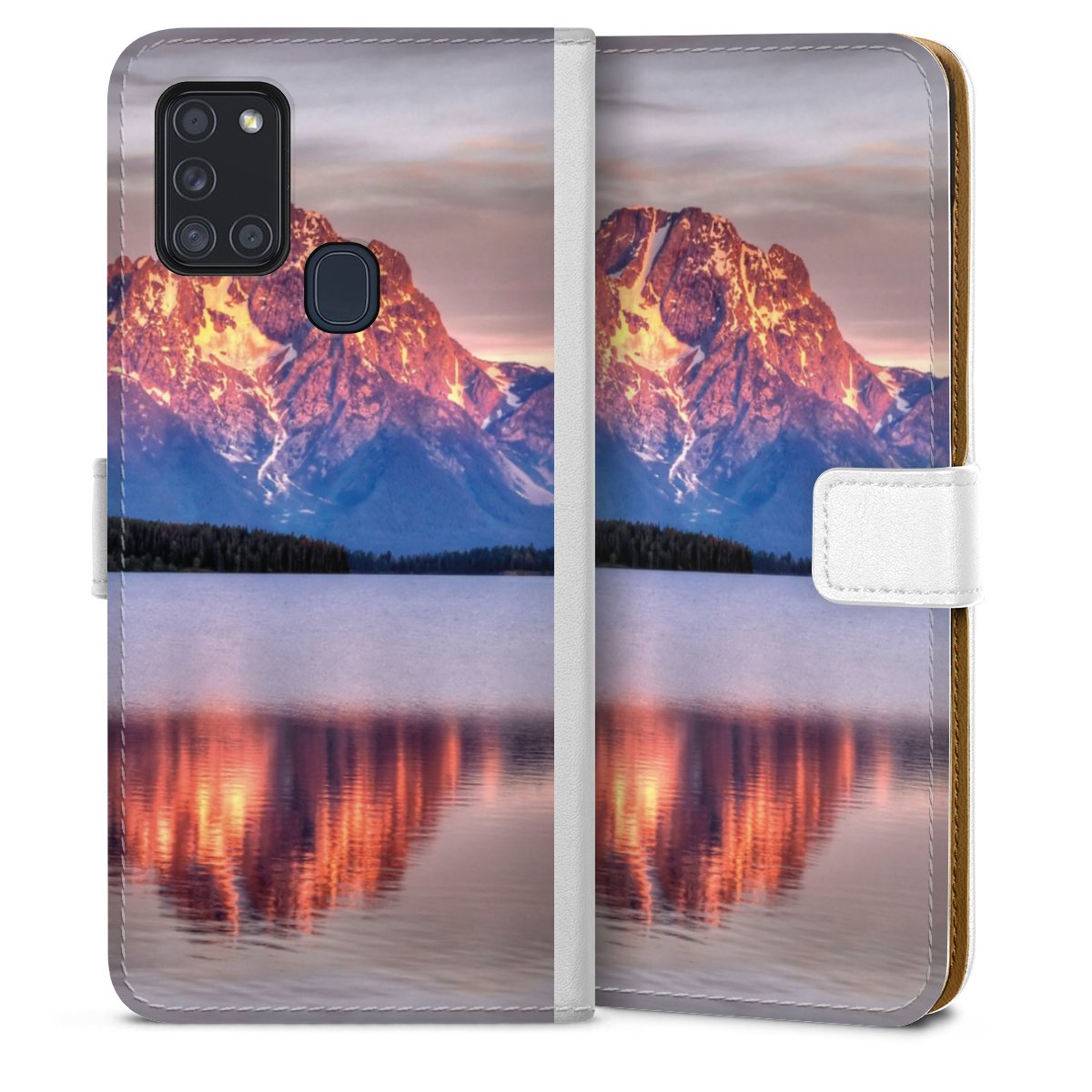 For our Sideflip Case we are using our advanced direct printing technology. The back and frontside are fully printabale, the inside of the phone bag is left unprinted. You can order the phone case without print, printed completely or also with a partial print.