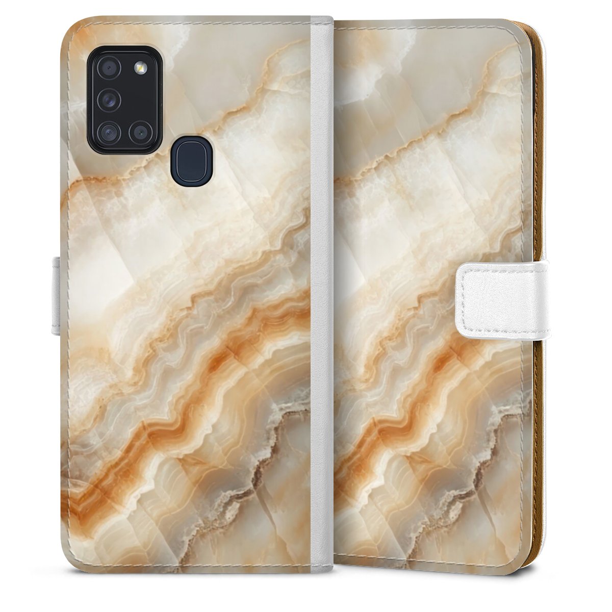 For our Sideflip Case we are using our advanced direct printing technology. The back and frontside are fully printabale, the inside of the phone bag is left unprinted. You can order the phone case without print, printed completely or also with a partial print.