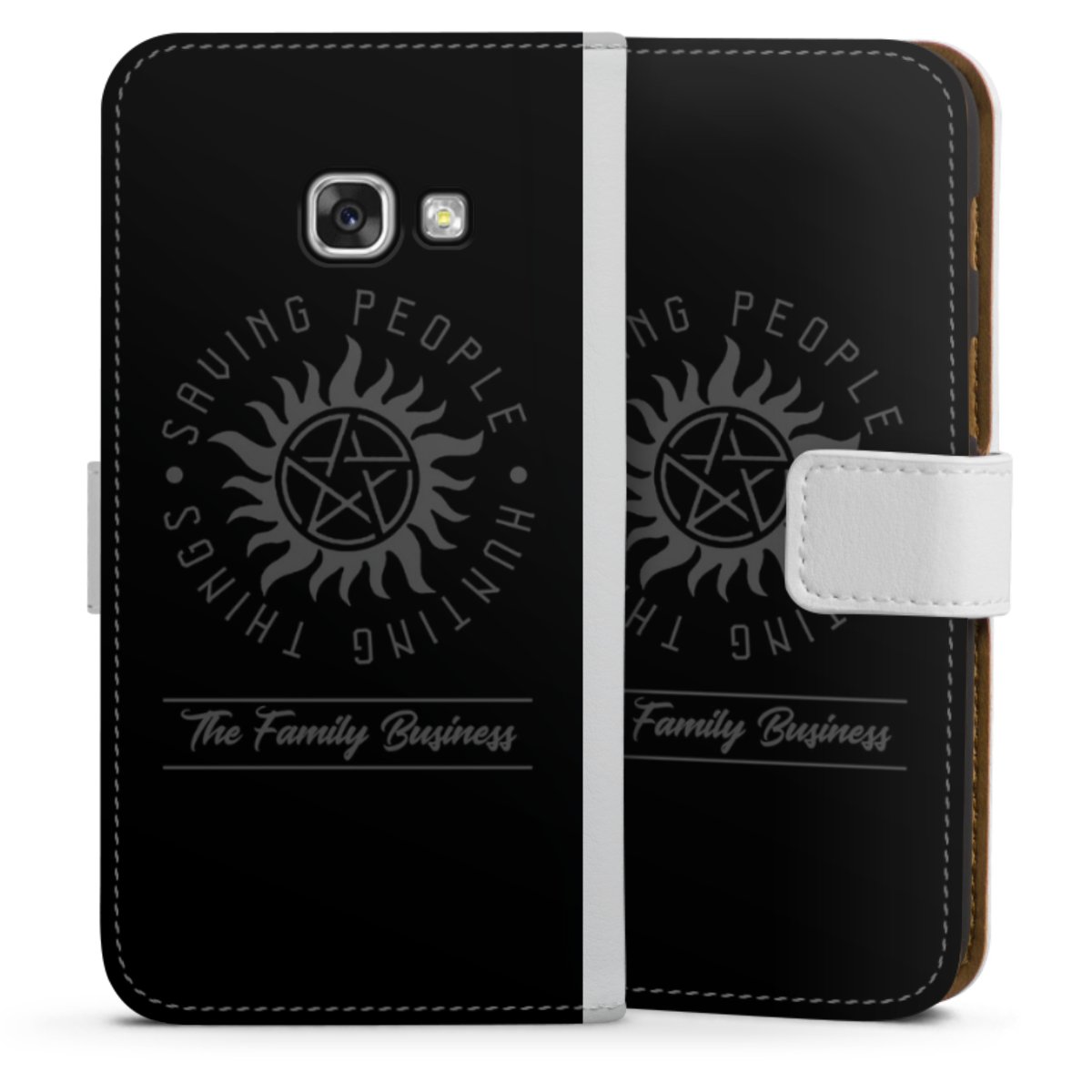 For our Sideflip Case we are using our advanced direct printing technology. The back and frontside are fully printabale, the inside of the phone bag is left unprinted. You can order the phone case without print, printed completely or also with a partial print.