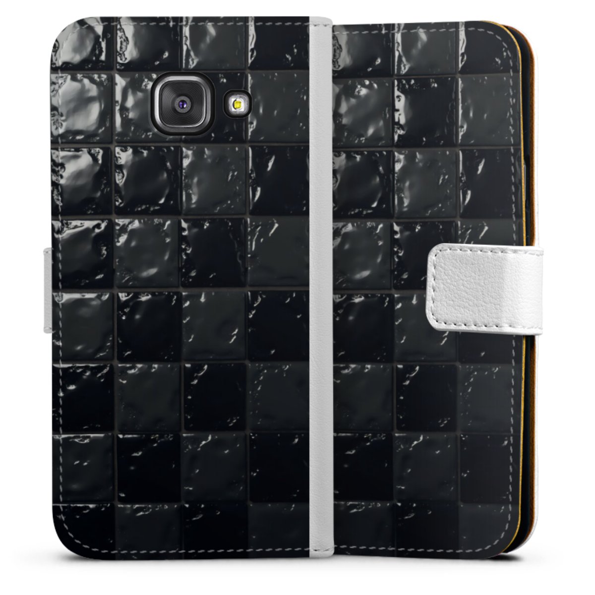 For our Sideflip Case we are using our advanced direct printing technology. The back and frontside are fully printabale, the inside of the phone bag is left unprinted. You can order the phone case without print, printed completely or also with a partial print.