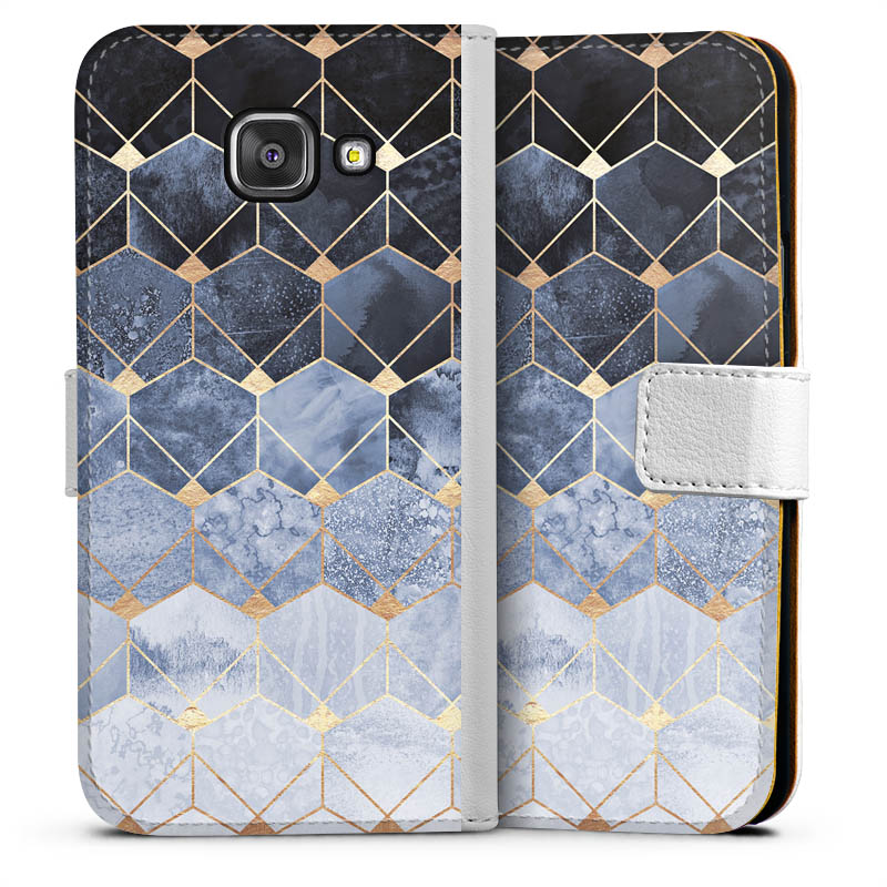 Blue Hexagons And Diamonds Gold Print