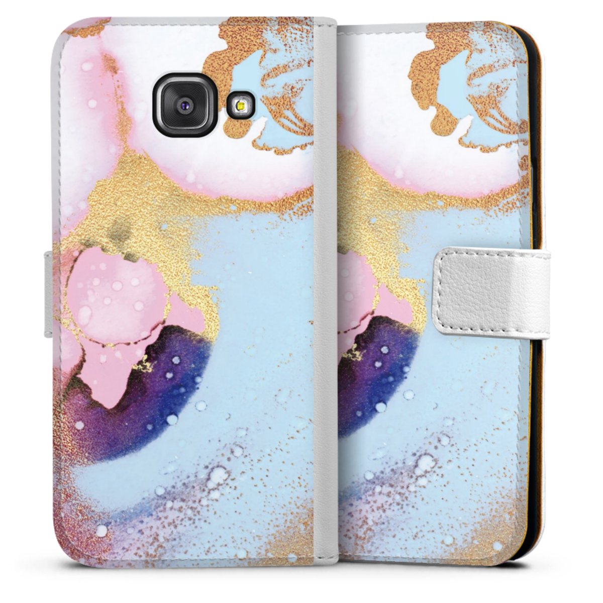 For our Sideflip Case we are using our advanced direct printing technology. The back and frontside are fully printabale, the inside of the phone bag is left unprinted. You can order the phone case without print, printed completely or also with a partial print.