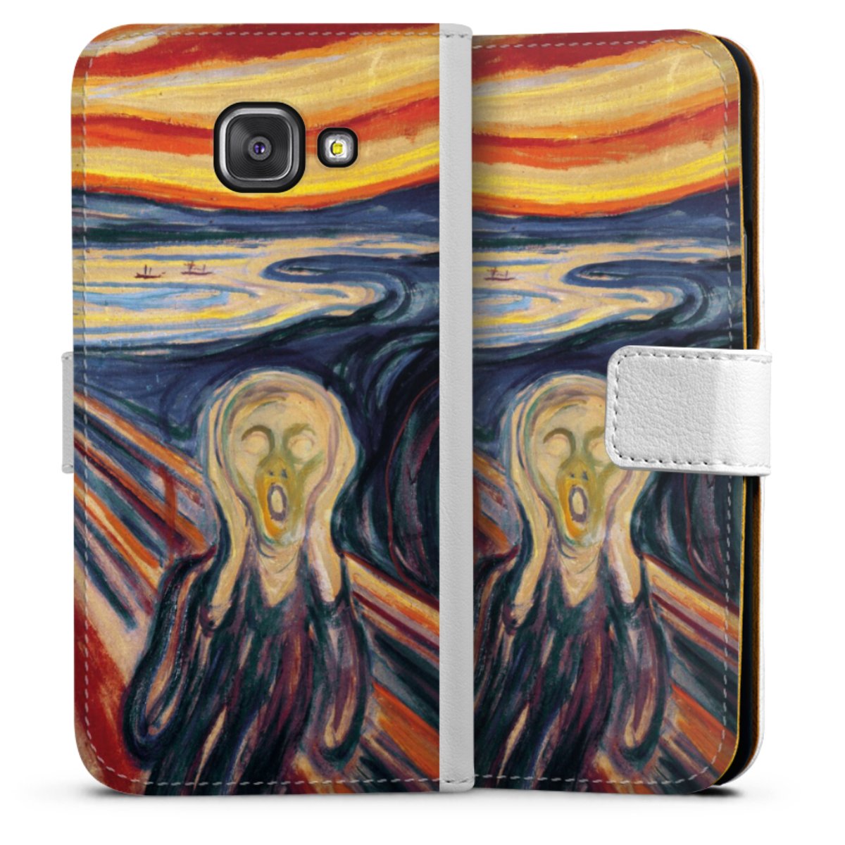 For our Sideflip Case we are using our advanced direct printing technology. The back and frontside are fully printabale, the inside of the phone bag is left unprinted. You can order the phone case without print, printed completely or also with a partial print.