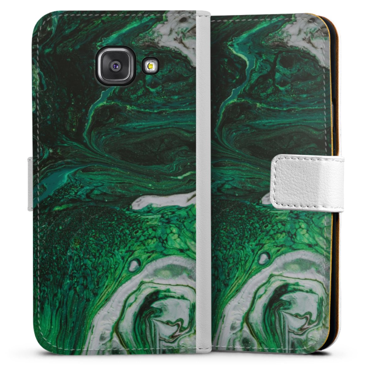 For our Sideflip Case we are using our advanced direct printing technology. The back and frontside are fully printabale, the inside of the phone bag is left unprinted. You can order the phone case without print, printed completely or also with a partial print.