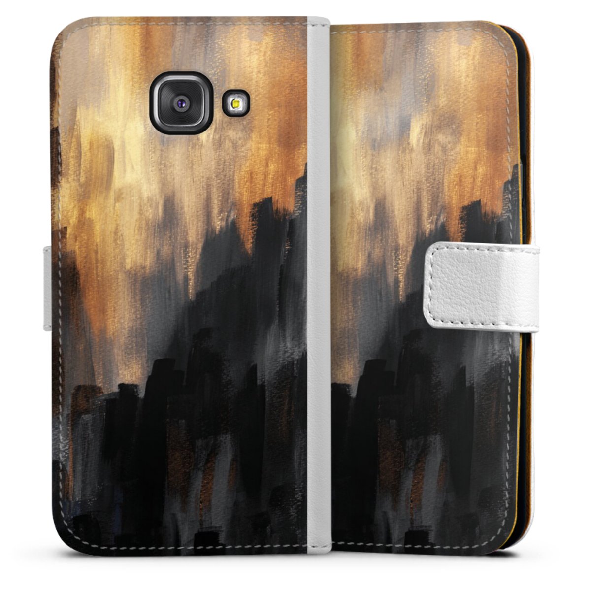 For our Sideflip Case we are using our advanced direct printing technology. The back and frontside are fully printabale, the inside of the phone bag is left unprinted. You can order the phone case without print, printed completely or also with a partial print.