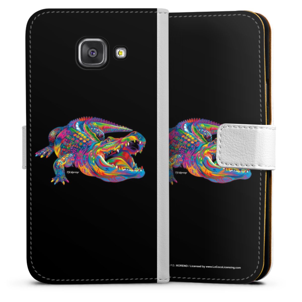 For our Sideflip Case we are using our advanced direct printing technology. The back and frontside are fully printabale, the inside of the phone bag is left unprinted. You can order the phone case without print, printed completely or also with a partial print.