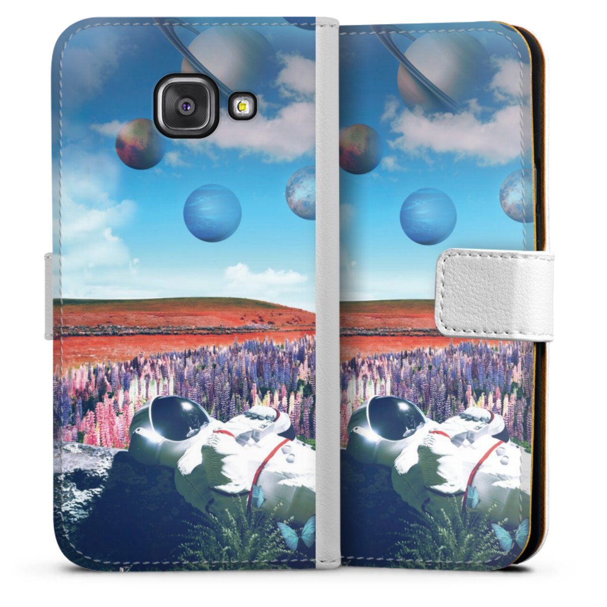 For our Sideflip Case we are using our advanced direct printing technology. The back and frontside are fully printabale, the inside of the phone bag is left unprinted. You can order the phone case without print, printed completely or also with a partial print.