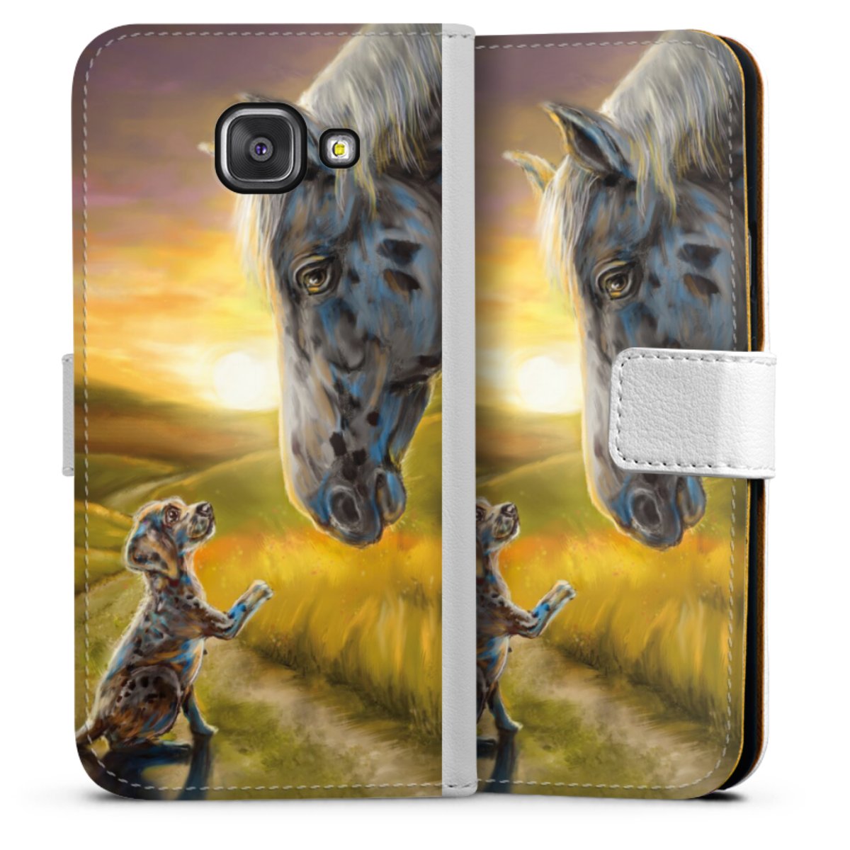 For our Sideflip Case we are using our advanced direct printing technology. The back and frontside are fully printabale, the inside of the phone bag is left unprinted. You can order the phone case without print, printed completely or also with a partial print.