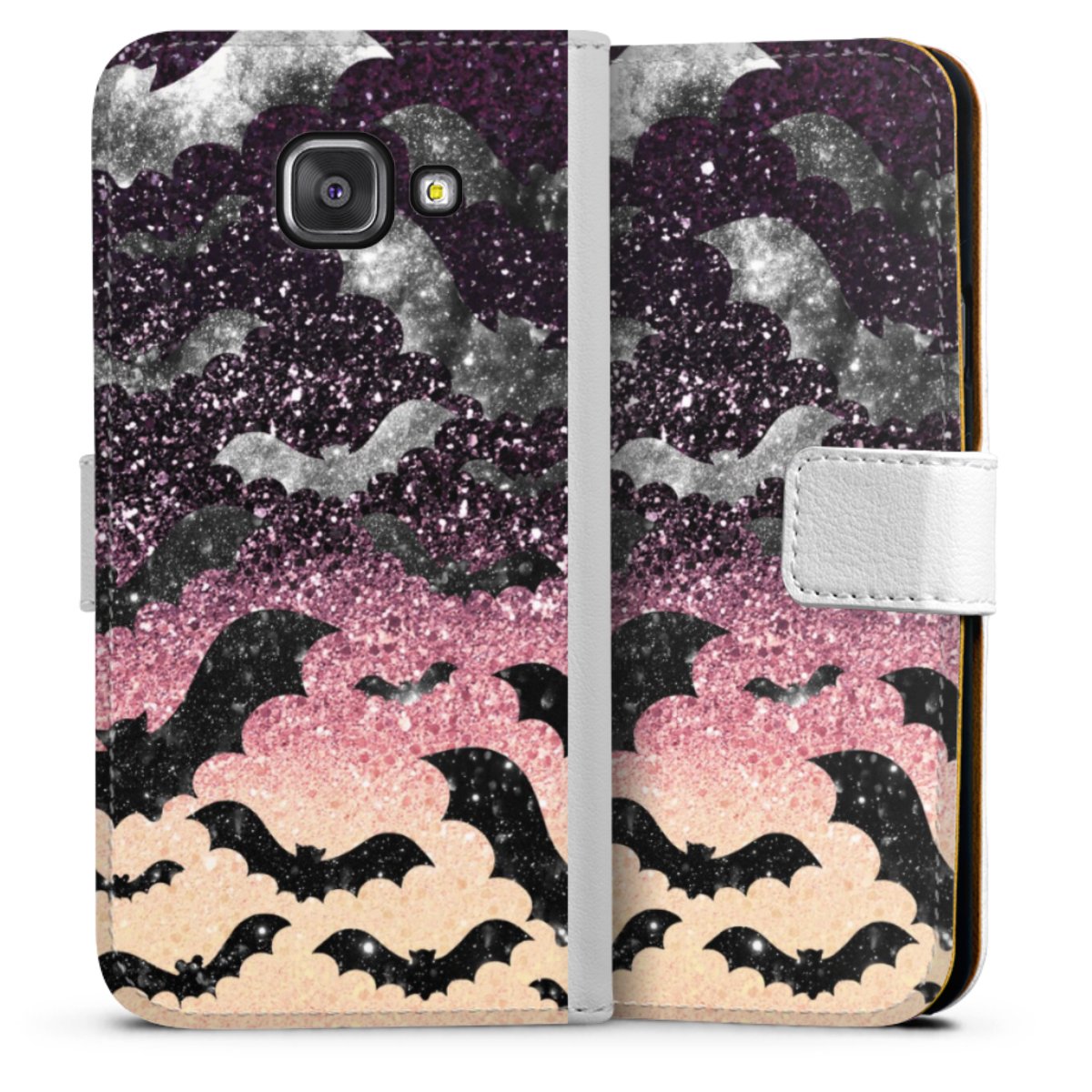 For our Sideflip Case we are using our advanced direct printing technology. The back and frontside are fully printabale, the inside of the phone bag is left unprinted. You can order the phone case without print, printed completely or also with a partial print.
