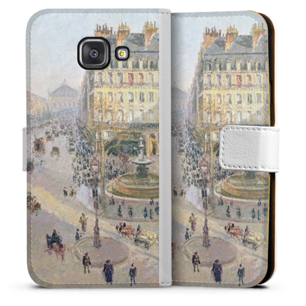 For our Sideflip Case we are using our advanced direct printing technology. The back and frontside are fully printabale, the inside of the phone bag is left unprinted. You can order the phone case without print, printed completely or also with a partial print.
