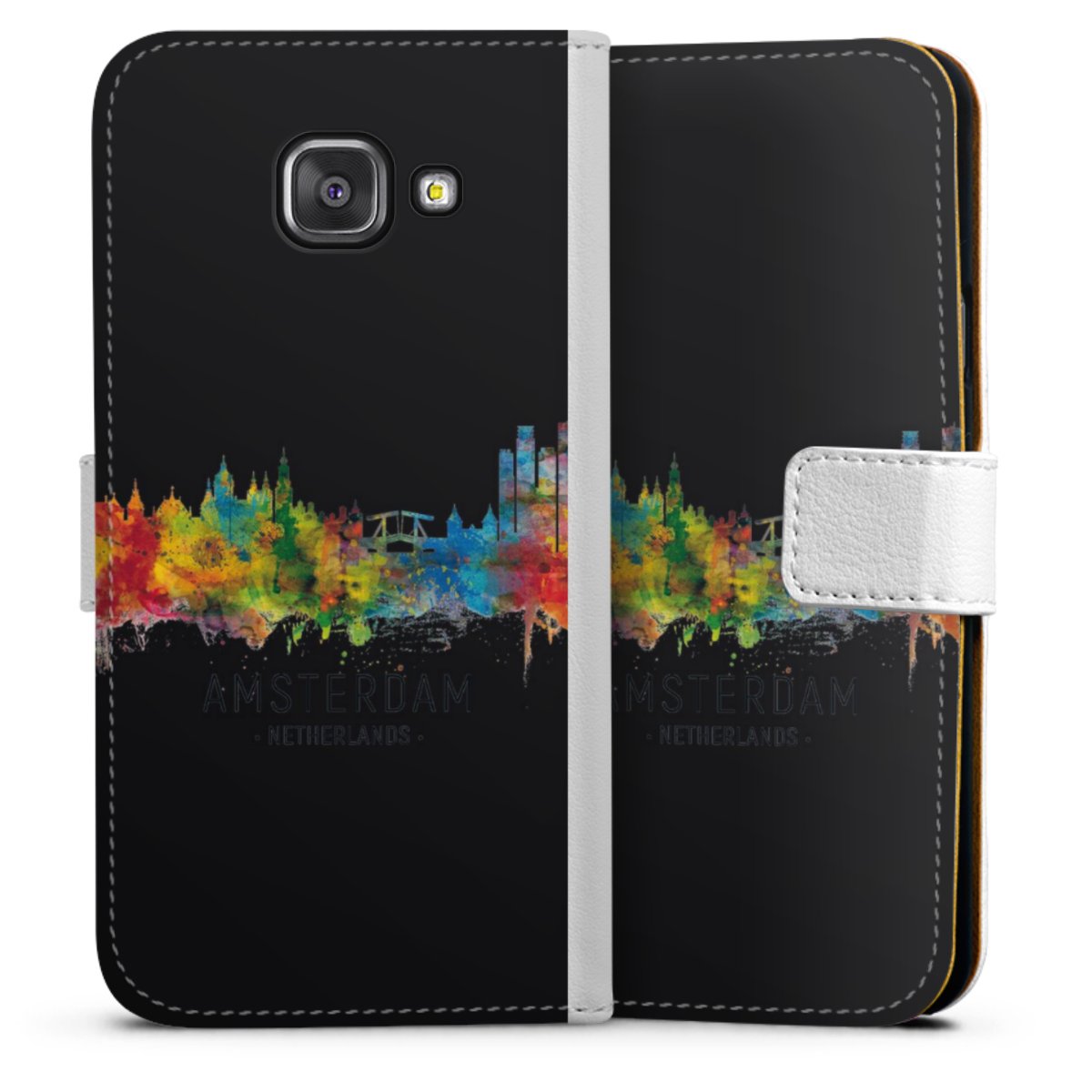 For our Sideflip Case we are using our advanced direct printing technology. The back and frontside are fully printabale, the inside of the phone bag is left unprinted. You can order the phone case without print, printed completely or also with a partial print.
