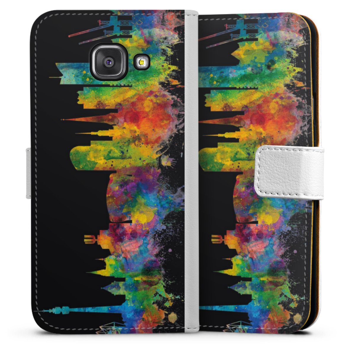For our Sideflip Case we are using our advanced direct printing technology. The back and frontside are fully printabale, the inside of the phone bag is left unprinted. You can order the phone case without print, printed completely or also with a partial print.
