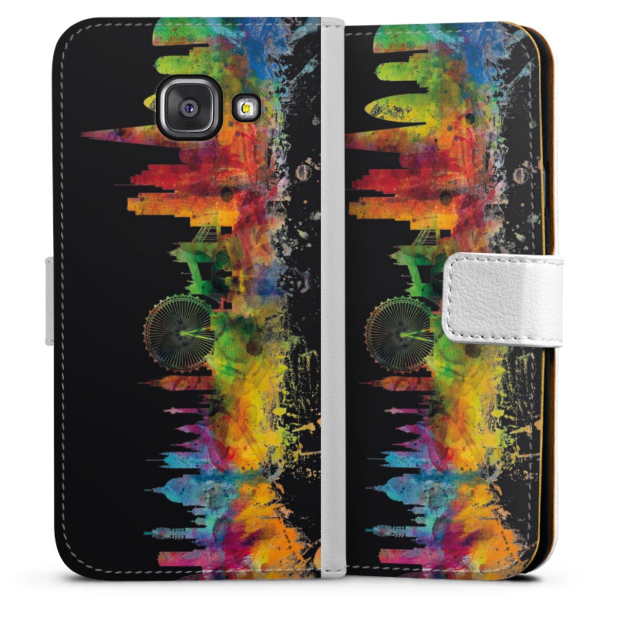 For our Sideflip Case we are using our advanced direct printing technology. The back and frontside are fully printabale, the inside of the phone bag is left unprinted. You can order the phone case without print, printed completely or also with a partial print.
