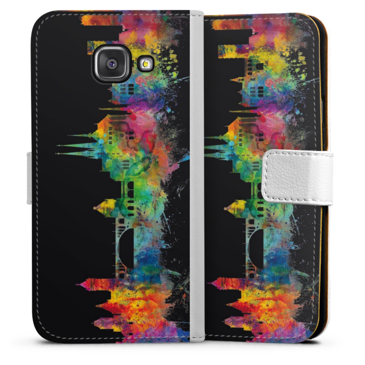 For our Sideflip Case we are using our advanced direct printing technology. The back and frontside are fully printabale, the inside of the phone bag is left unprinted. You can order the phone case without print, printed completely or also with a partial print.