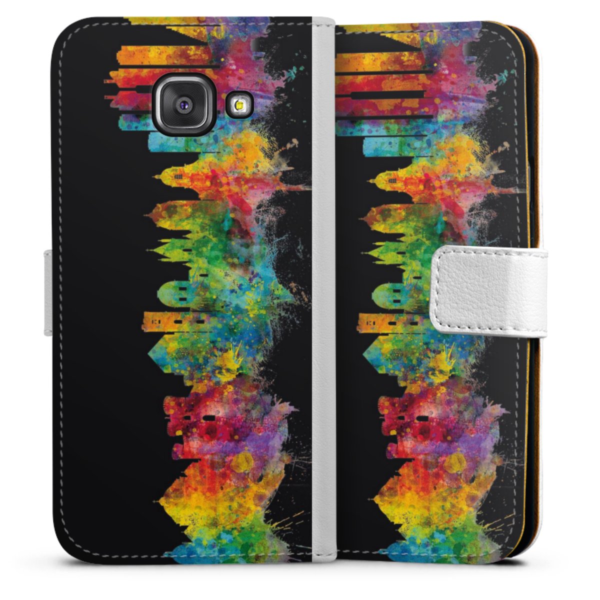 For our Sideflip Case we are using our advanced direct printing technology. The back and frontside are fully printabale, the inside of the phone bag is left unprinted. You can order the phone case without print, printed completely or also with a partial print.