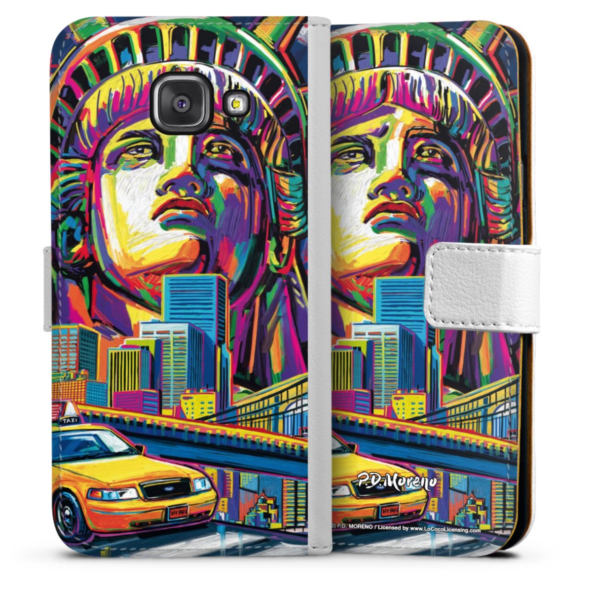For our Sideflip Case we are using our advanced direct printing technology. The back and frontside are fully printabale, the inside of the phone bag is left unprinted. You can order the phone case without print, printed completely or also with a partial print.