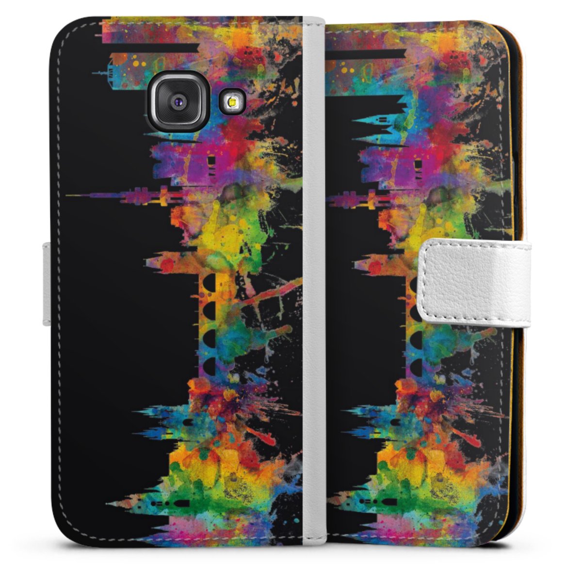 For our Sideflip Case we are using our advanced direct printing technology. The back and frontside are fully printabale, the inside of the phone bag is left unprinted. You can order the phone case without print, printed completely or also with a partial print.