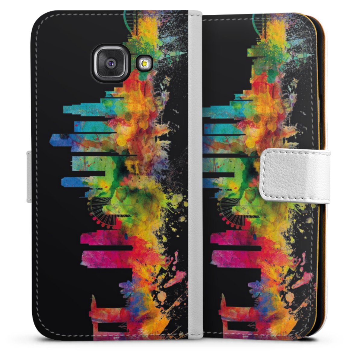 For our Sideflip Case we are using our advanced direct printing technology. The back and frontside are fully printabale, the inside of the phone bag is left unprinted. You can order the phone case without print, printed completely or also with a partial print.