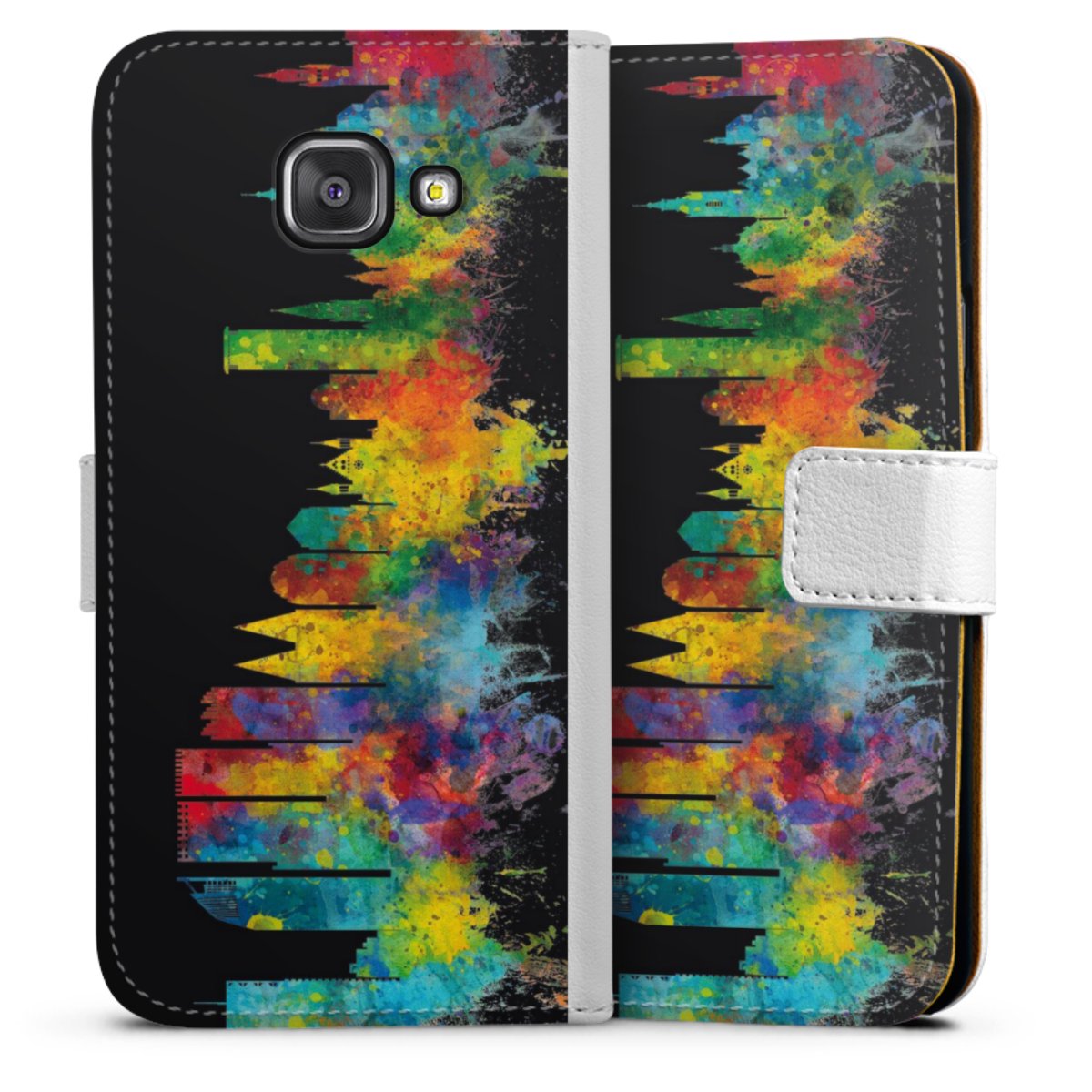 For our Sideflip Case we are using our advanced direct printing technology. The back and frontside are fully printabale, the inside of the phone bag is left unprinted. You can order the phone case without print, printed completely or also with a partial print.