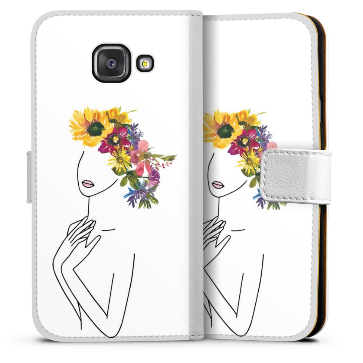 For our Sideflip Case we are using our advanced direct printing technology. The back and frontside are fully printabale, the inside of the phone bag is left unprinted. You can order the phone case without print, printed completely or also with a partial print.