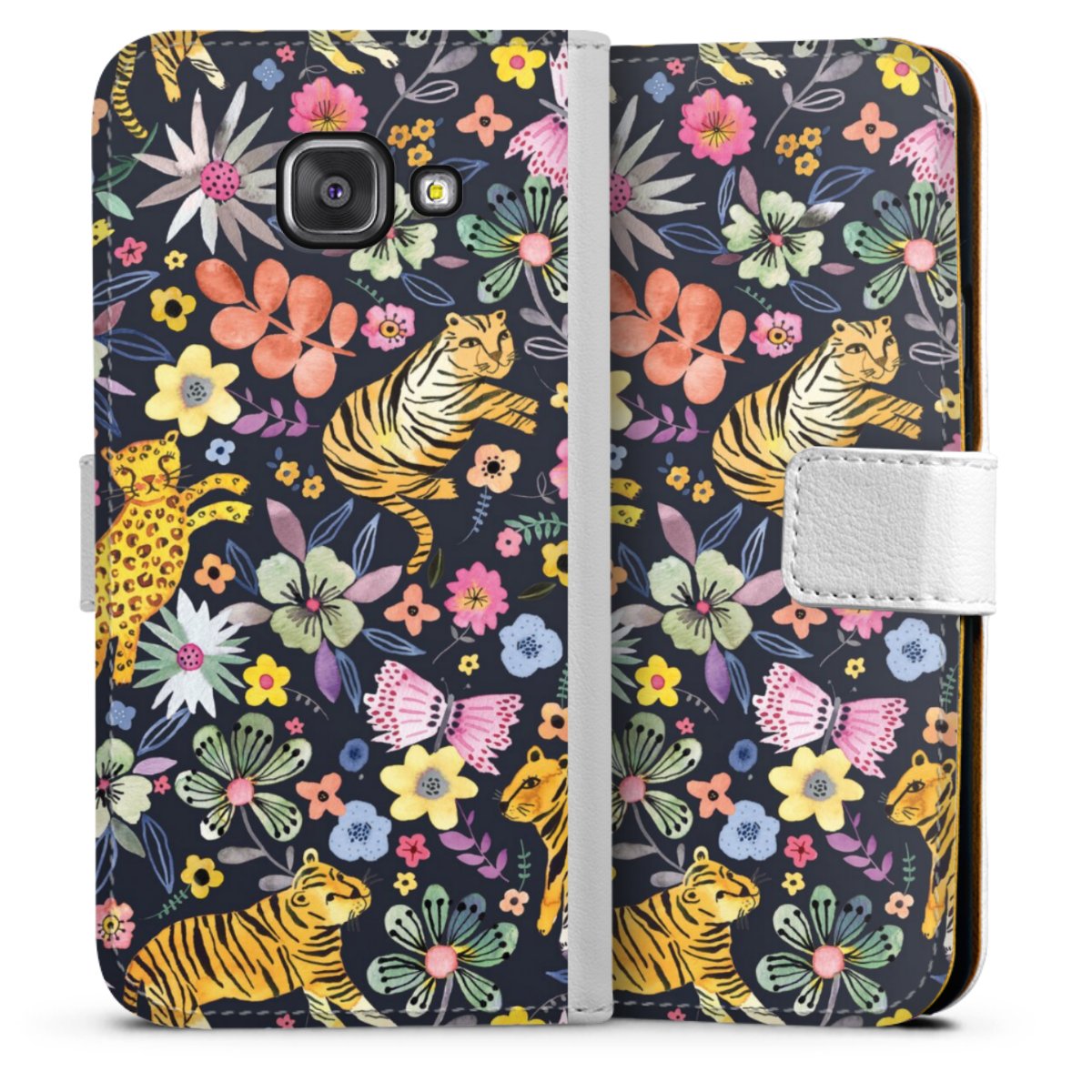 For our Sideflip Case we are using our advanced direct printing technology. The back and frontside are fully printabale, the inside of the phone bag is left unprinted. You can order the phone case without print, printed completely or also with a partial print.