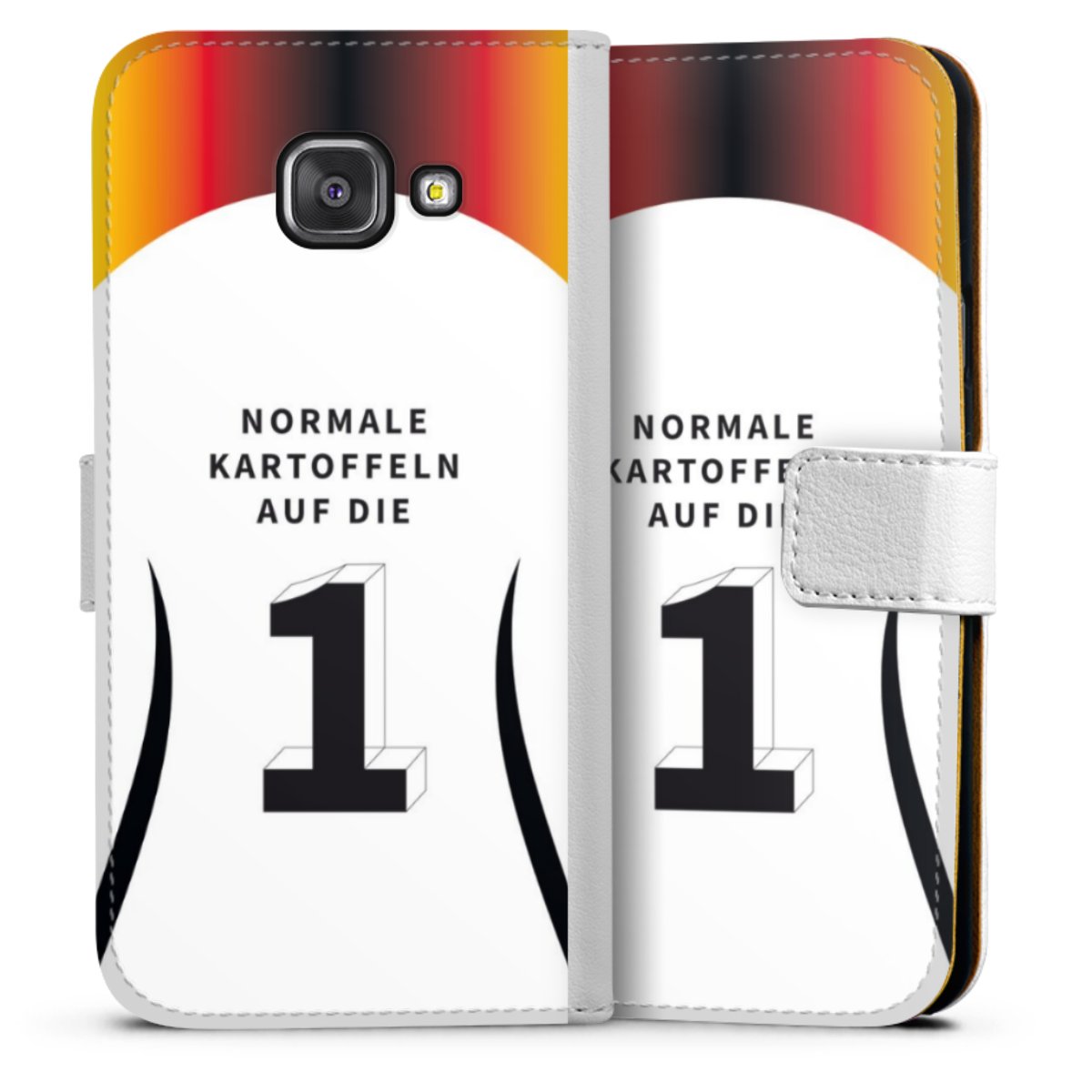 For our Sideflip Case we are using our advanced direct printing technology. The back and frontside are fully printabale, the inside of the phone bag is left unprinted. You can order the phone case without print, printed completely or also with a partial print.