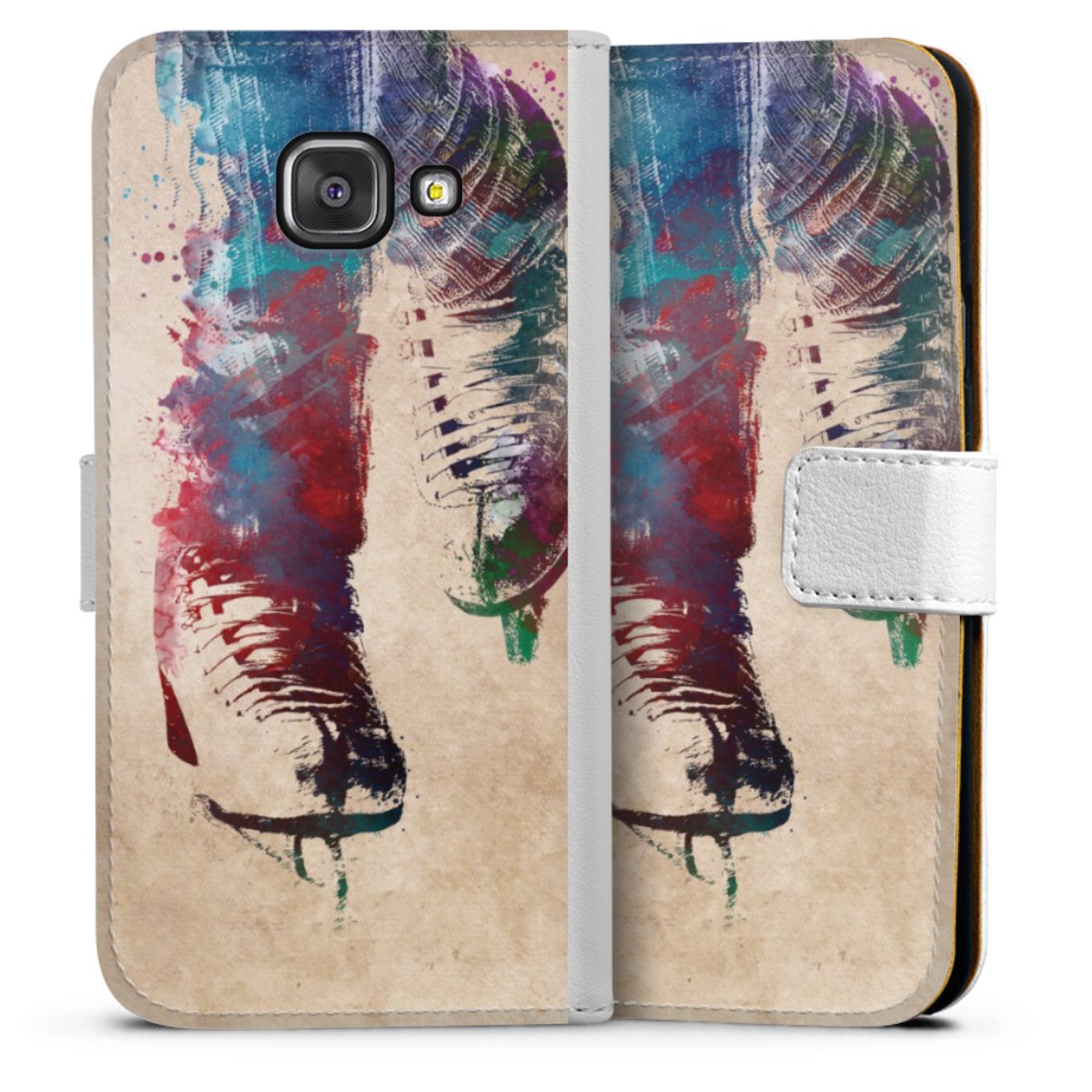 For our Sideflip Case we are using our advanced direct printing technology. The back and frontside are fully printabale, the inside of the phone bag is left unprinted. You can order the phone case without print, printed completely or also with a partial print.