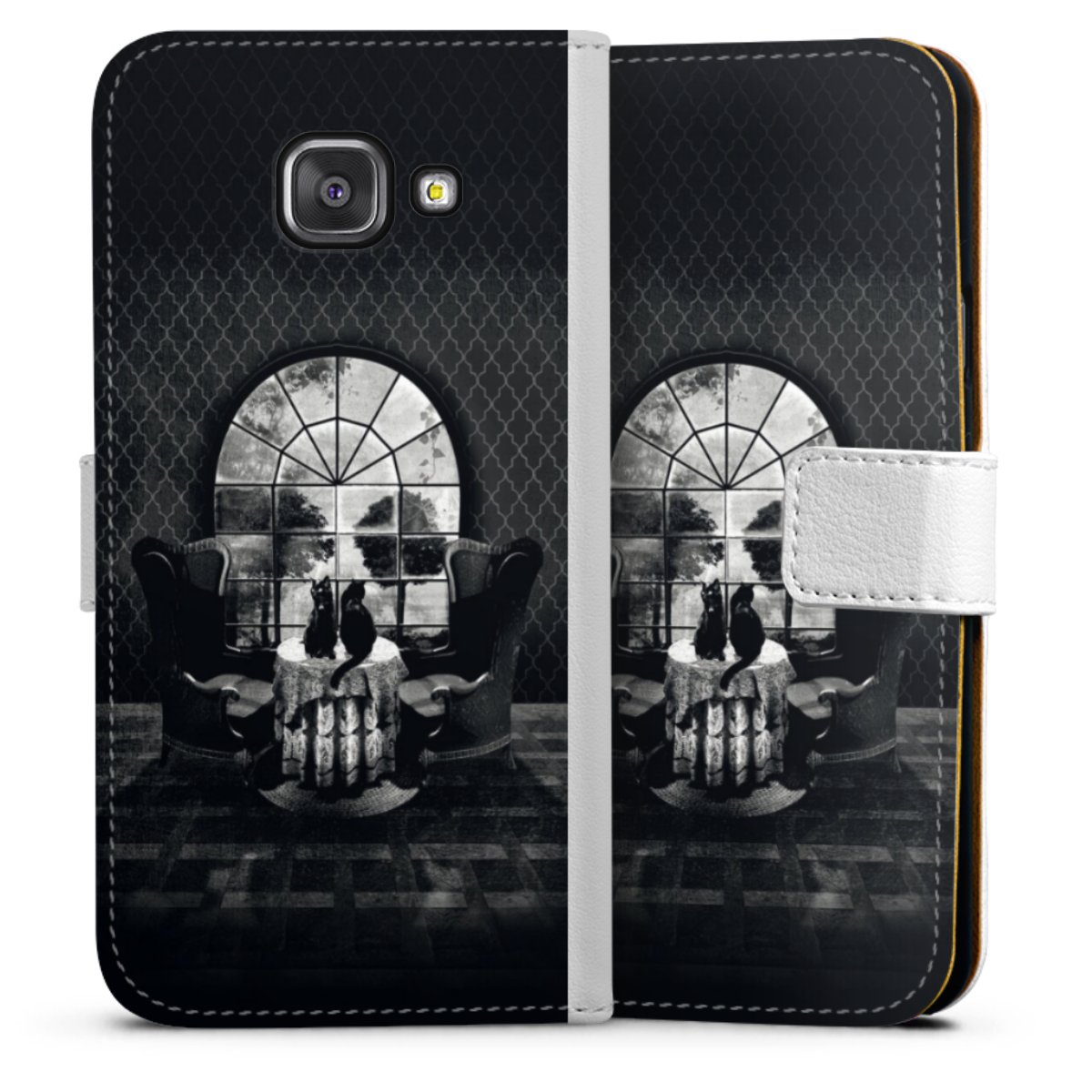 For our Sideflip Case we are using our advanced direct printing technology. The back and frontside are fully printabale, the inside of the phone bag is left unprinted. You can order the phone case without print, printed completely or also with a partial print.