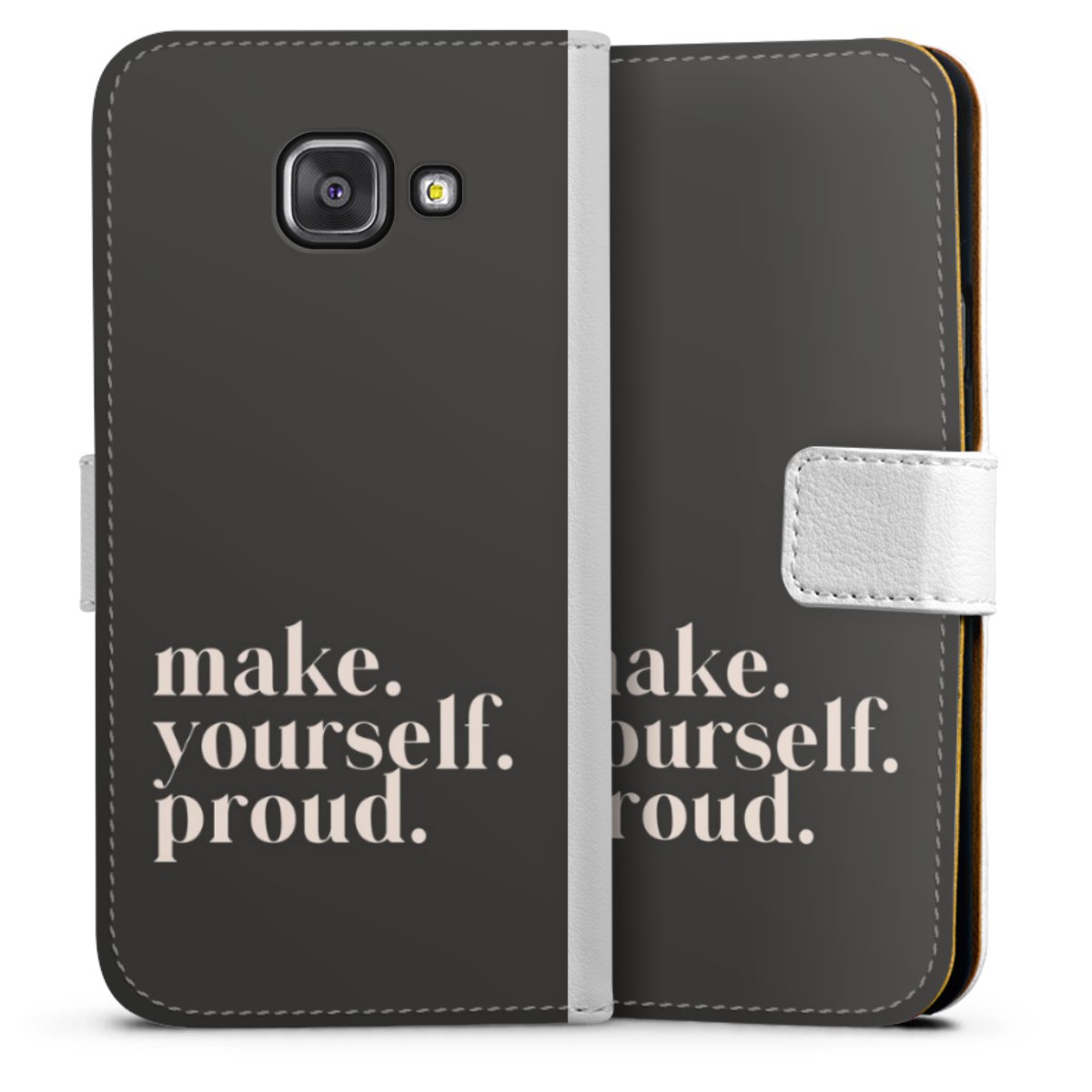 For our Sideflip Case we are using our advanced direct printing technology. The back and frontside are fully printabale, the inside of the phone bag is left unprinted. You can order the phone case without print, printed completely or also with a partial print.