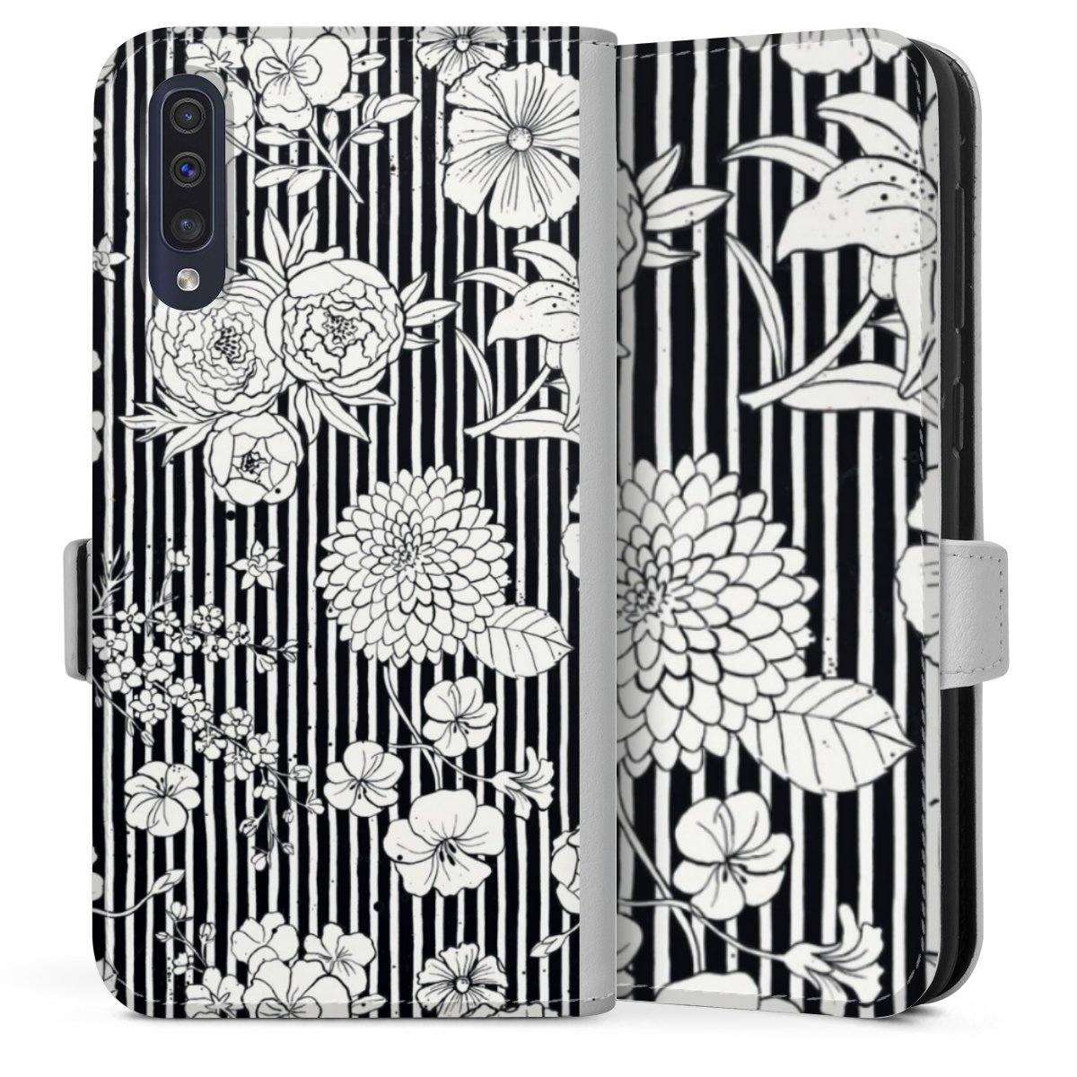 Flowers and Stripes Black and White