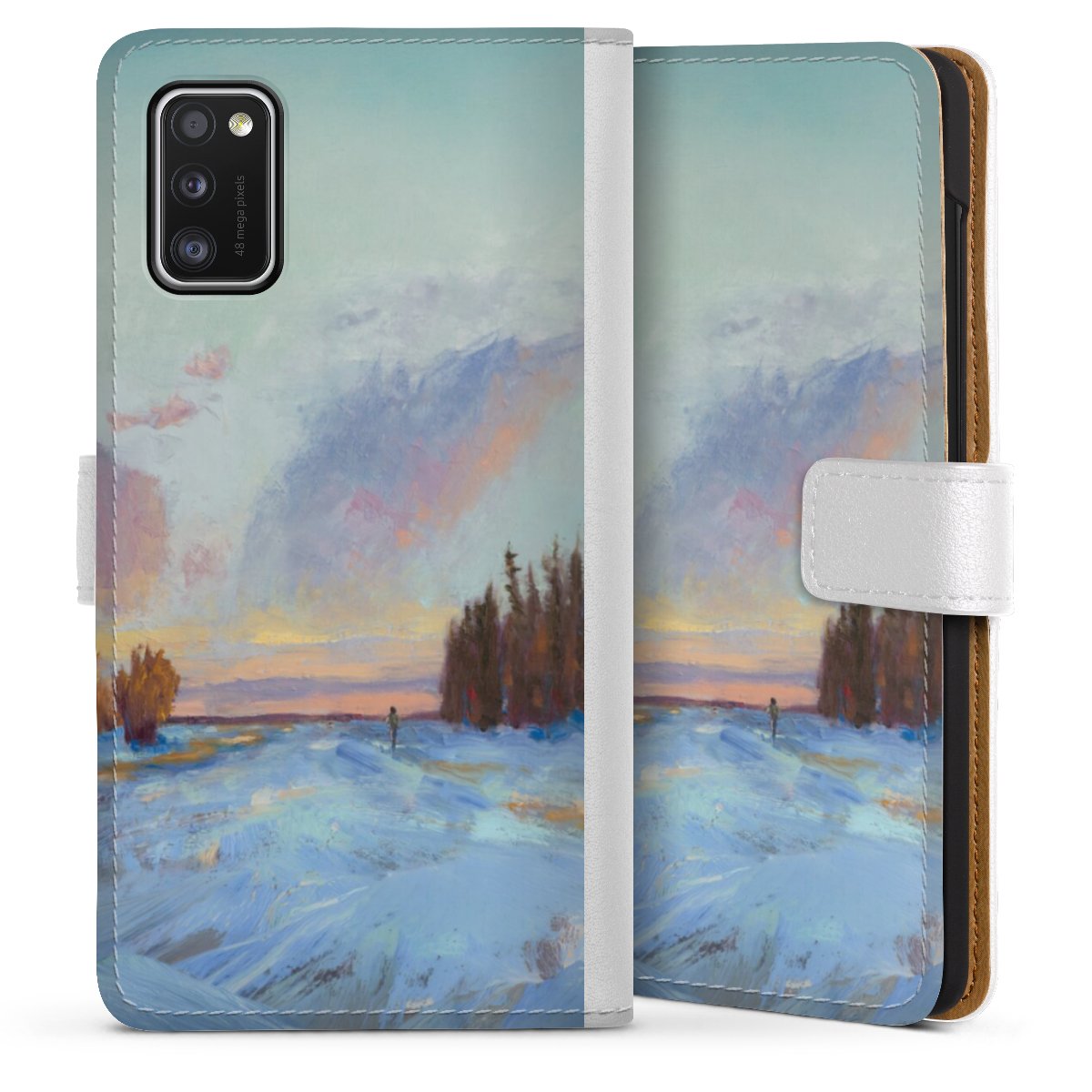 For our Sideflip Case we are using our advanced direct printing technology. The back and frontside are fully printabale, the inside of the phone bag is left unprinted. You can order the phone case without print, printed completely or also with a partial print.