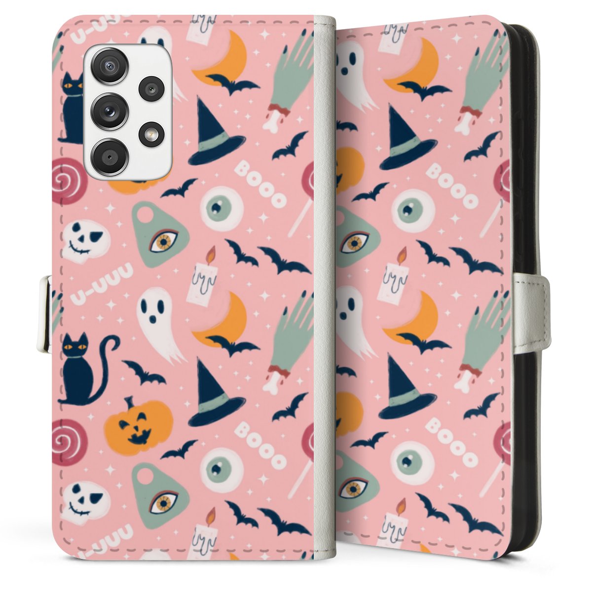 For our Sideflip Case we are using our advanced direct printing technology. The back and frontside are fully printabale, the inside of the phone bag is left unprinted. You can order the phone case without print, printed completely or also with a partial print.