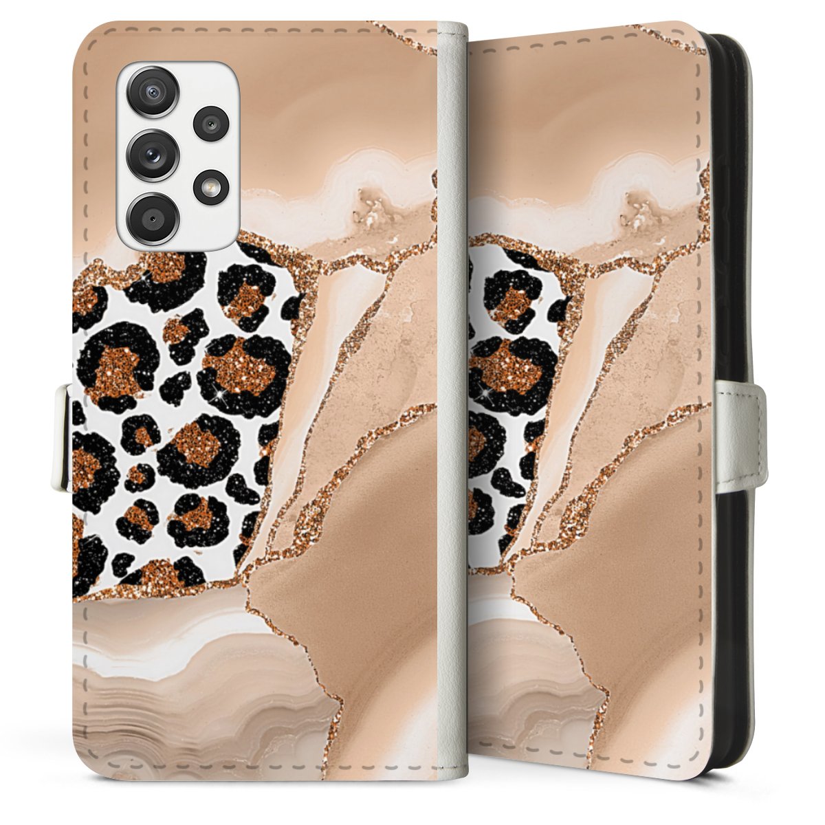 For our Sideflip Case we are using our advanced direct printing technology. The back and frontside are fully printabale, the inside of the phone bag is left unprinted. You can order the phone case without print, printed completely or also with a partial print.