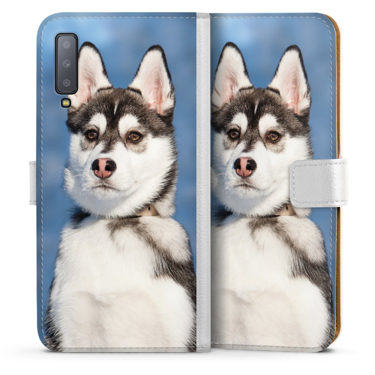 For our Sideflip Case we are using our advanced direct printing technology. The back and frontside are fully printabale, the inside of the phone bag is left unprinted. You can order the phone case without print, printed completely or also with a partial print.