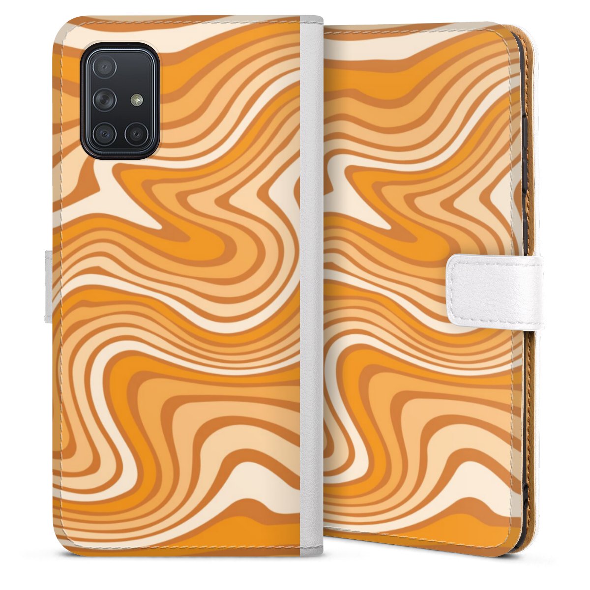 For our Sideflip Case we are using our advanced direct printing technology. The back and frontside are fully printabale, the inside of the phone bag is left unprinted. You can order the phone case without print, printed completely or also with a partial print.