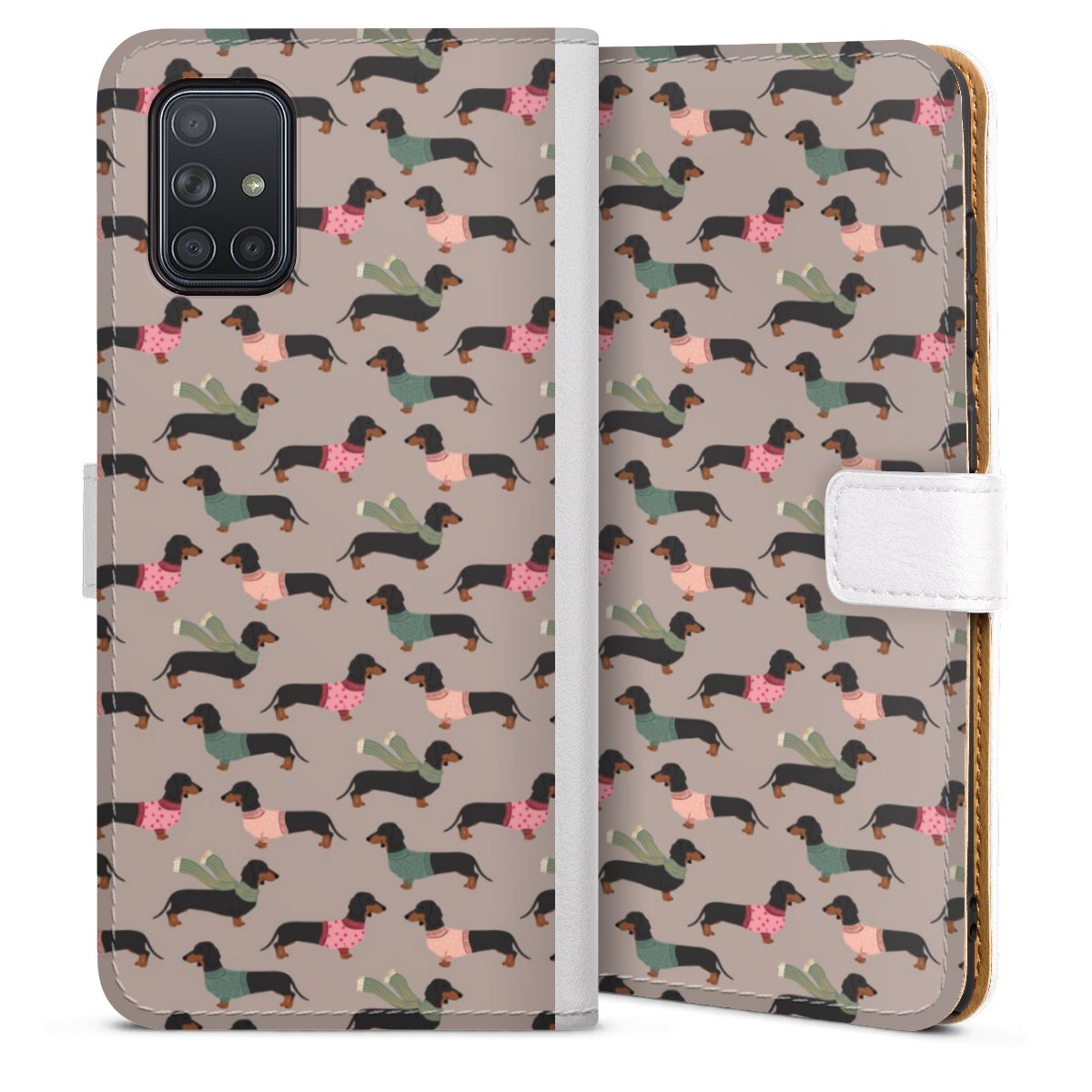 For our Sideflip Case we are using our advanced direct printing technology. The back and frontside are fully printabale, the inside of the phone bag is left unprinted. You can order the phone case without print, printed completely or also with a partial print.