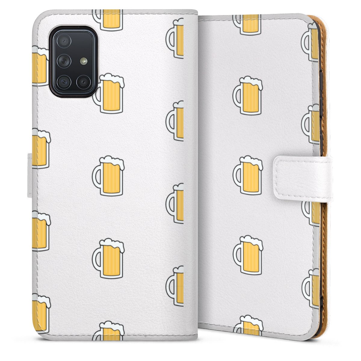 For our Sideflip Case we are using our advanced direct printing technology. The back and frontside are fully printabale, the inside of the phone bag is left unprinted. You can order the phone case without print, printed completely or also with a partial print.