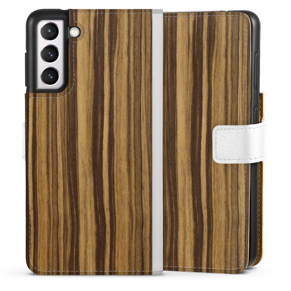 For our Sideflip Case we are using our advanced direct printing technology. The back and frontside are fully printabale, the inside of the phone bag is left unprinted. You can order the phone case without print, printed completely or also with a partial print.