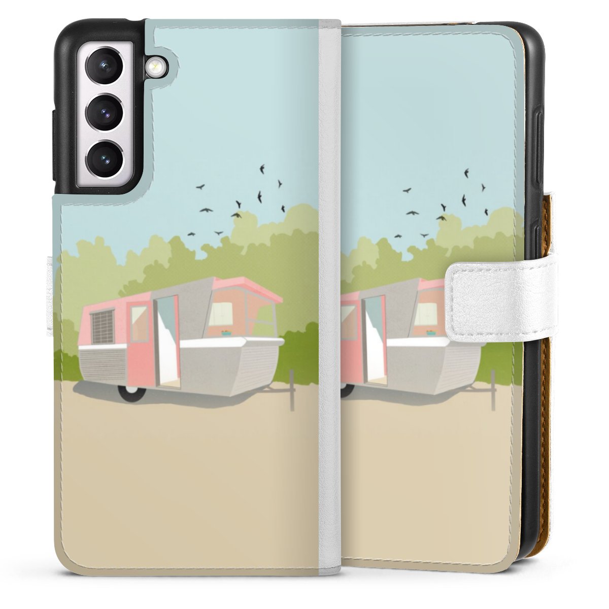 For our Sideflip Case we are using our advanced direct printing technology. The back and frontside are fully printabale, the inside of the phone bag is left unprinted. You can order the phone case without print, printed completely or also with a partial print.