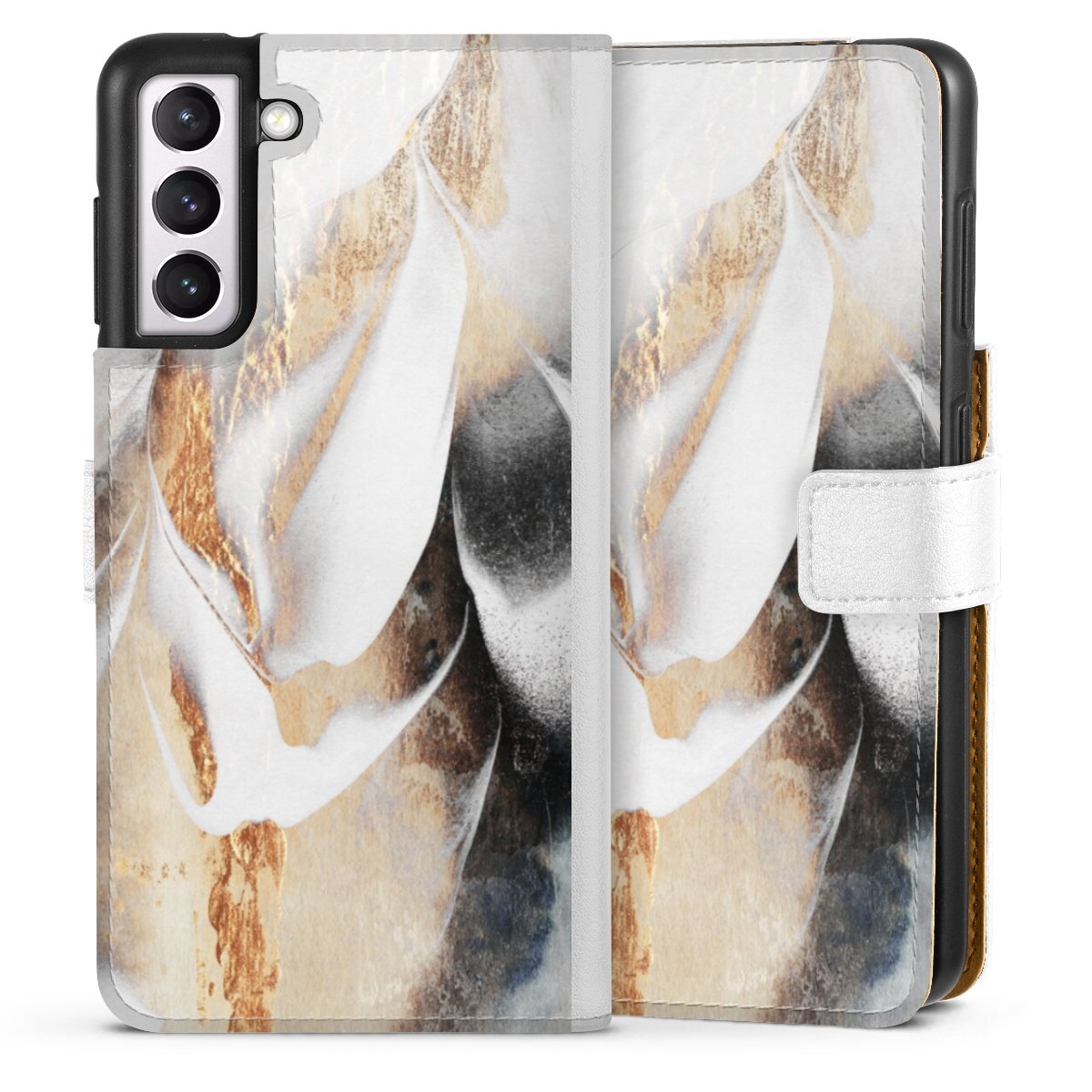 For our Sideflip Case we are using our advanced direct printing technology. The back and frontside are fully printabale, the inside of the phone bag is left unprinted. You can order the phone case without print, printed completely or also with a partial print.