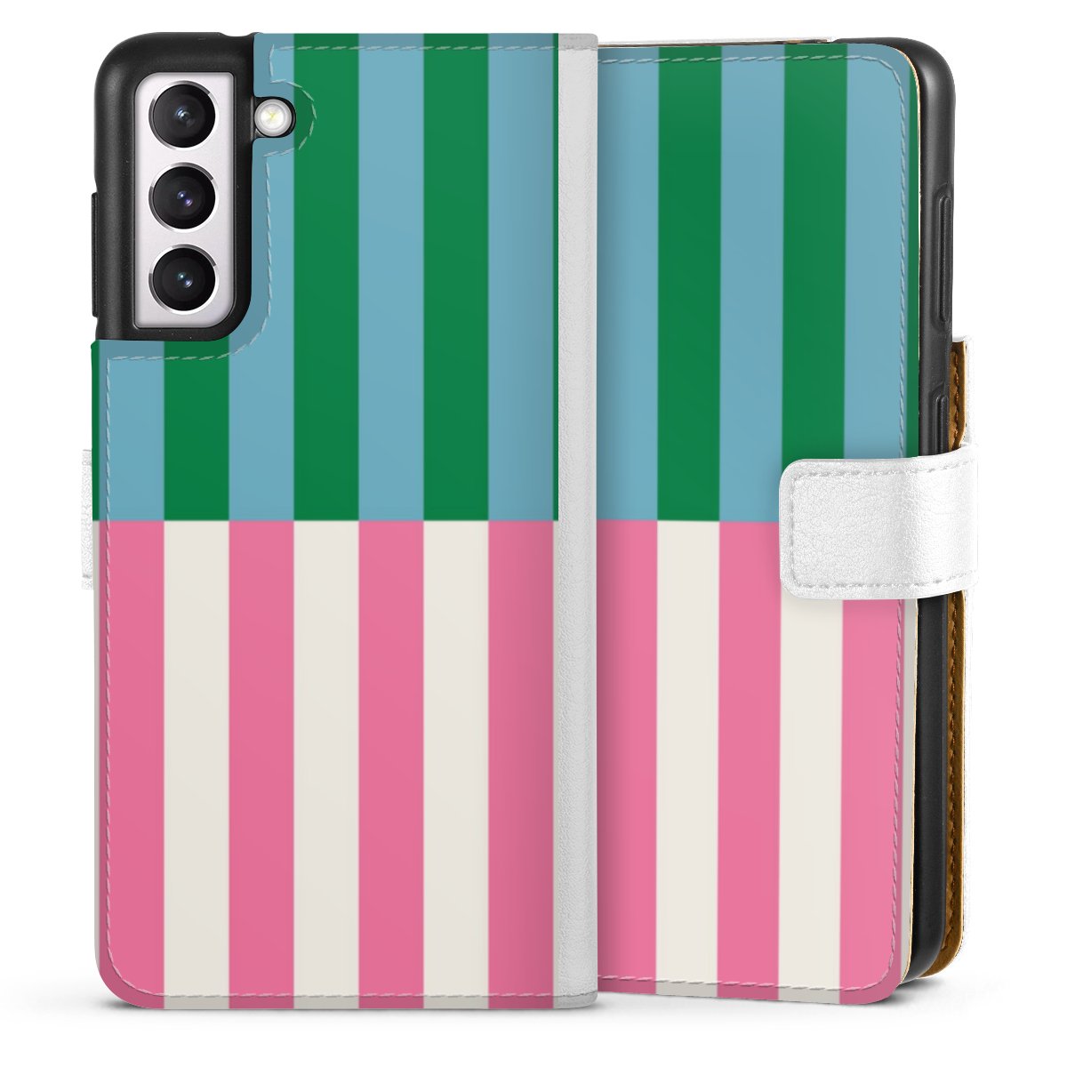 For our Sideflip Case we are using our advanced direct printing technology. The back and frontside are fully printabale, the inside of the phone bag is left unprinted. You can order the phone case without print, printed completely or also with a partial print.