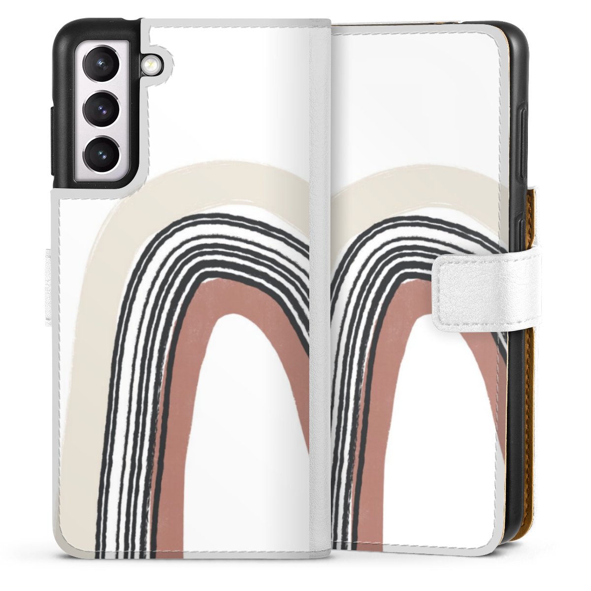 For our Sideflip Case we are using our advanced direct printing technology. The back and frontside are fully printabale, the inside of the phone bag is left unprinted. You can order the phone case without print, printed completely or also with a partial print.