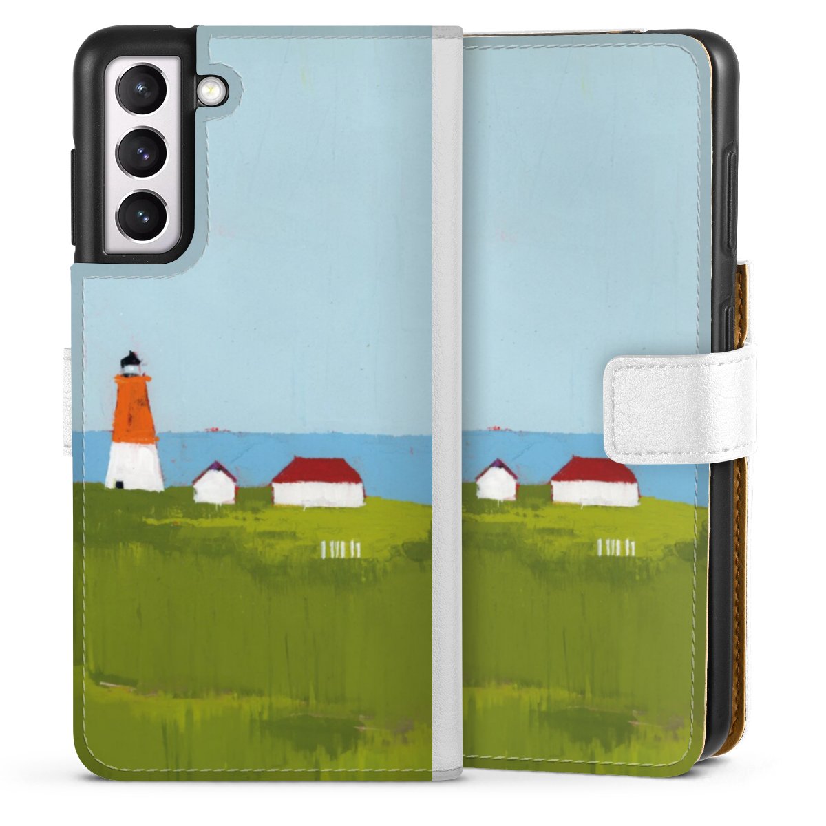 For our Sideflip Case we are using our advanced direct printing technology. The back and frontside are fully printabale, the inside of the phone bag is left unprinted. You can order the phone case without print, printed completely or also with a partial print.