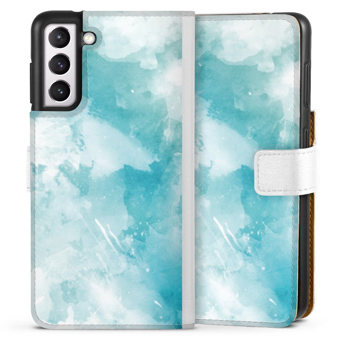 For our Sideflip Case we are using our advanced direct printing technology. The back and frontside are fully printabale, the inside of the phone bag is left unprinted. You can order the phone case without print, printed completely or also with a partial print.