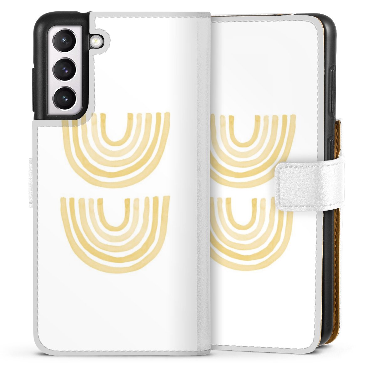 For our Sideflip Case we are using our advanced direct printing technology. The back and frontside are fully printabale, the inside of the phone bag is left unprinted. You can order the phone case without print, printed completely or also with a partial print.